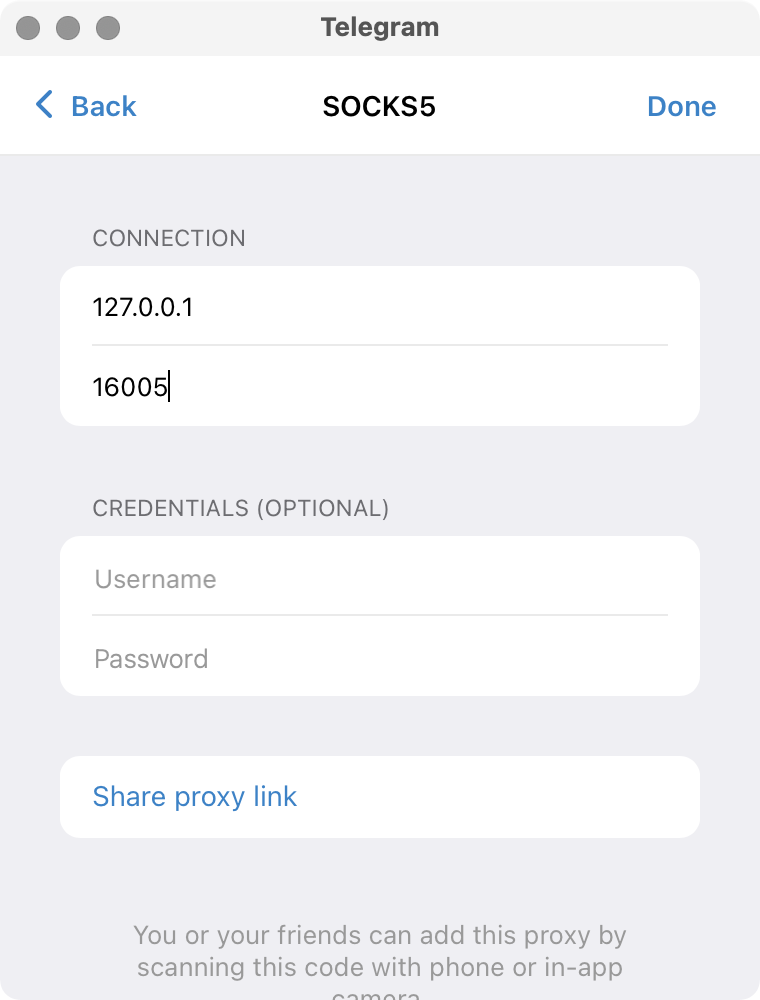 When using VPXGUI in WEB or XTLS mode, it creates a private proxy server that can be used with apps like Telegram.